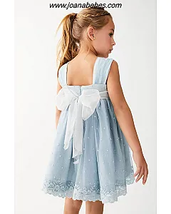 TARTALETA VESTIDO CRETA TUL BORDADO AZUL CLARO CEREMONIA