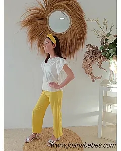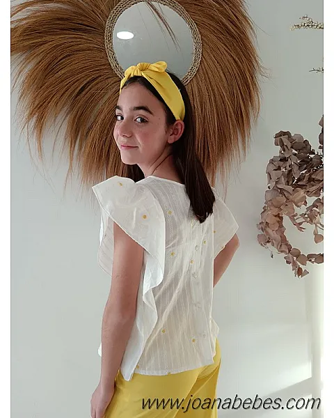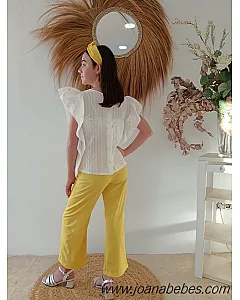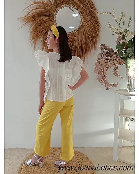 MY BELLA MOON CONJUNTO PANTALON CREP Y BLUSA MARGARITAS BORDADAS