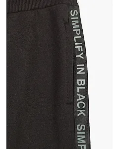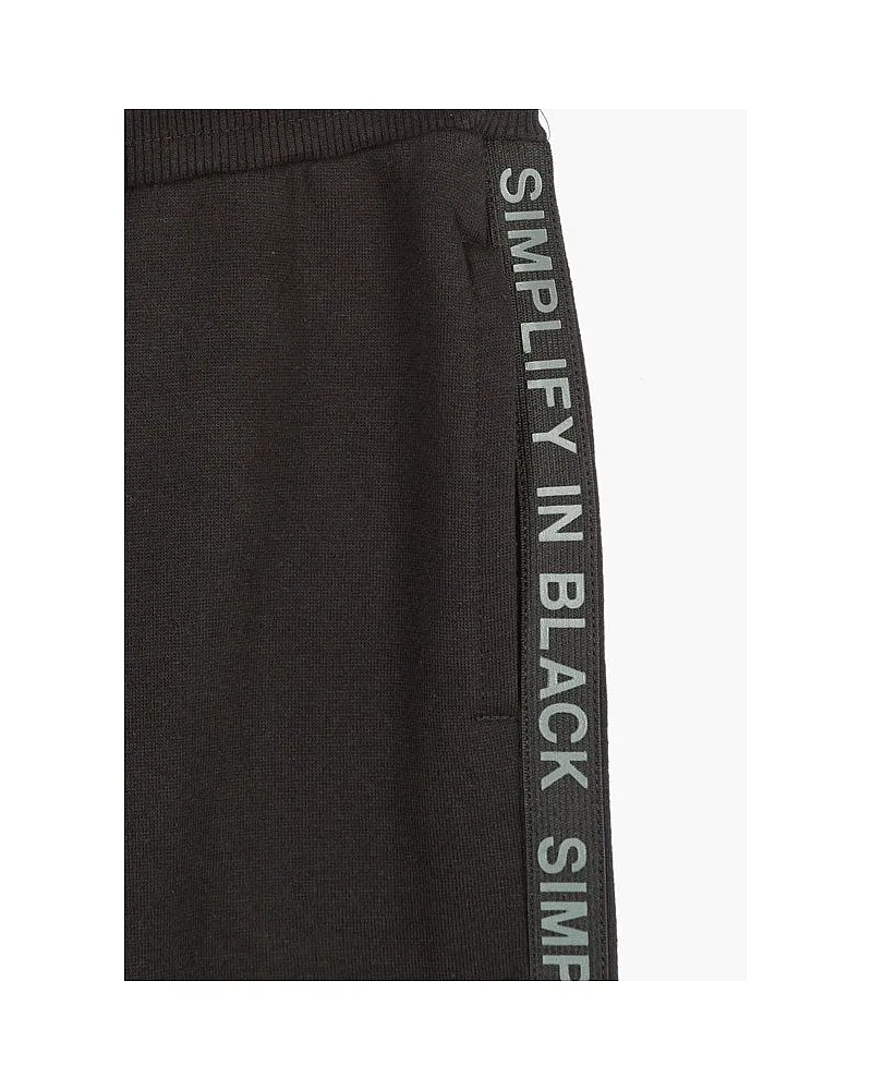 Pantalón de felpa con bandas estampadas laterales para chico. Pantalón con cintura elástica y cordones ajustables. Tejido de canalé en cintura y puños. Bolsillos laterales.