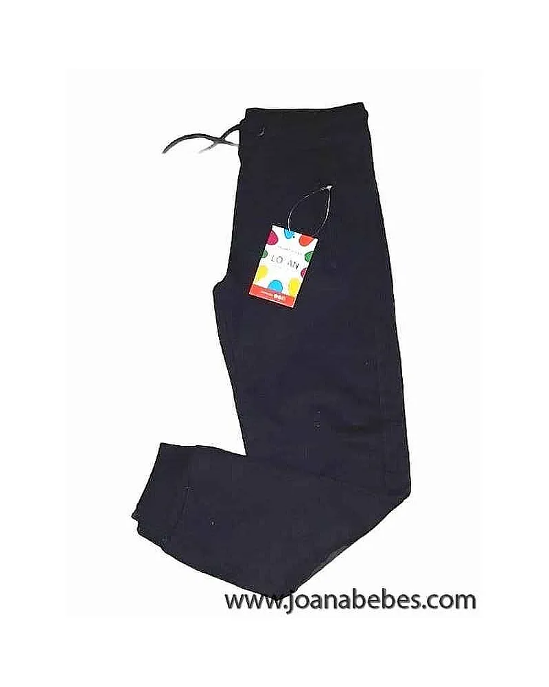 Pantalón de felpa de color negro con bolsillos para chico. Pantalón con cintura elástica en tejido de canalé, con ojales y cordón ajustador. Bragueta simulada. Bolsillos delanteros con cremalleras. Puños en el bajo en tejido de canalé. Bolsillo trasero con cremallera.