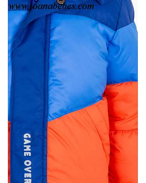 Parka con detalles reflectantes para niño. Parka acolchada con capucha con cremallera y cierre en cuello con automático. Doble cierre delantero con cremallera y tapeta con automáticos. Tiradores metálicos personalizados de la marca Losan con detalle de cintas. Interior forrado en tejido polar.