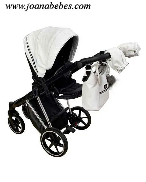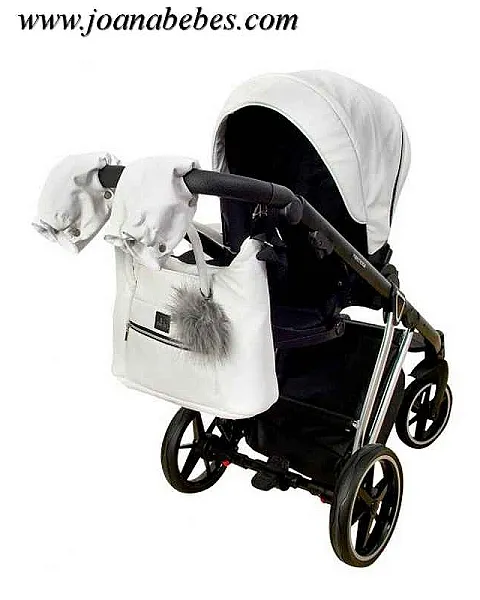 Belissa está equipada con un elegante bolso con un elegante pompón de piel y un cinturón de hombro. Otros accesorios incluidos en el set son: plastico de lluvia, mosquitera, guantes y cambiador.