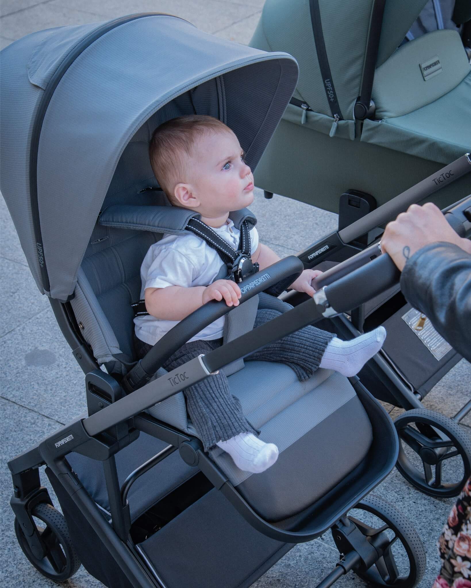 El carrito Tic Toc de Foppapedretti es ligero, compacto e innovador: se pliega fácilmente con una mano y ocupa muy poco espacio (tan solo 51 cm de ancho). También es elegante y sofisticado: la atención al detalle es máxima, como los tejidos premium con protección solar UPF50+, manillar en ecopiel, ruedas con amortiguación para garantizar la comodidad del niño y también de los padres.