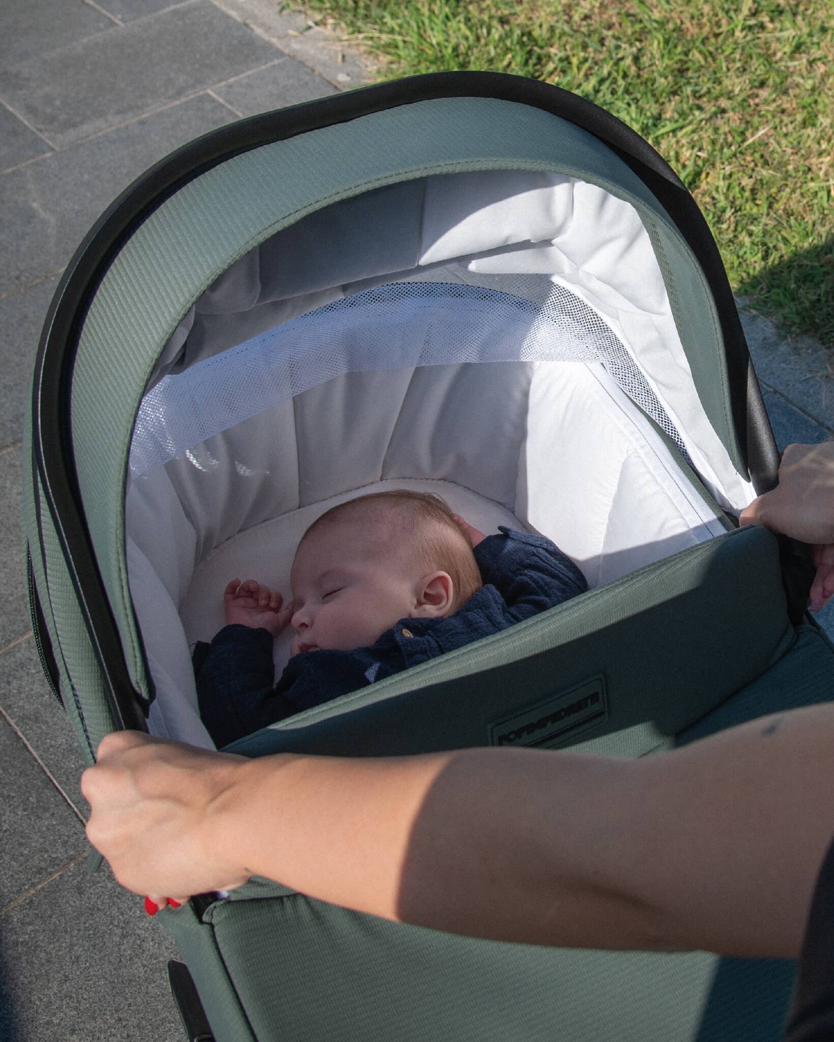 La capota de capazo además de la extensión XL cuenta con rejilla de ventilación para una mayor circulación del aire durante los primeros meses del bebé
