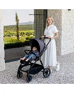 - Seguridad mejorada :arnés de 5 puntos con hombreras, cubiertas de hebillas inferiores, freno trasero de un toque y telas impermeables con UPF 50+