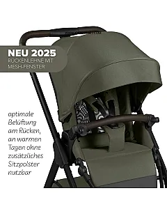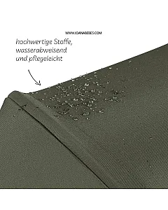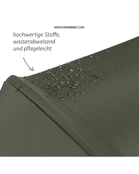 Los tejidos de la capota están pensados para el exterior. Con factor de protección solar UPF 50+, protegen de forma fiable al bebé del sol durante los viajes. Cuando llueve, las propiedades