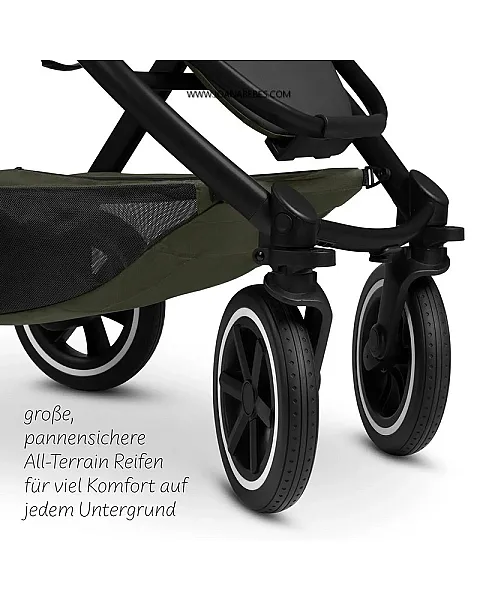 Ya sea en las aceras de la ciudad, en el parque o fuera de las rutas habituales, el cochecito Samba 2 de ABC Design es compacto y se adapta a cualquier superficie.