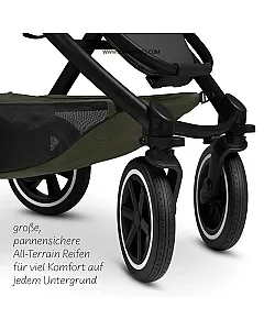 Los rodamientos de bolas de alta calidad, la suspensión integrada y las ruedas con cámara de aire antipinchazos le ofrecen a usted y a su hijo la máxima comodidad