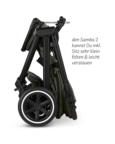 o llevarlo fácilmente contigo en el autobús o en el tren. Y si necesitas moverte rápidamente, puedes plegar rápidamente el Samba 2 incluso con el asiento, independientemente