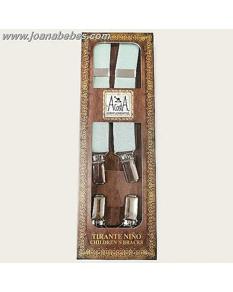 Tirante Infantil 4 pinzas y cruceta metálica Composición: Tira elástica de 2 cm de anchura. Fornitura: Metálica níquel (Pinzas,...