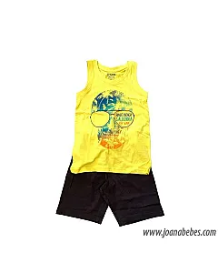 Conjunto de punto de camiseta de manga corta y bermuda para chico. Conjunto de camiseta de algodón. Cuello...