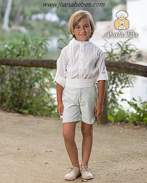 FAJIN, BERMUDA VERDE Y CAMISA DE LINO CON JARETAS