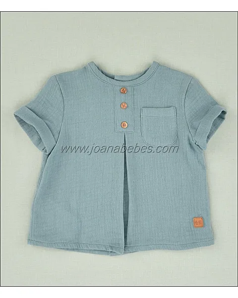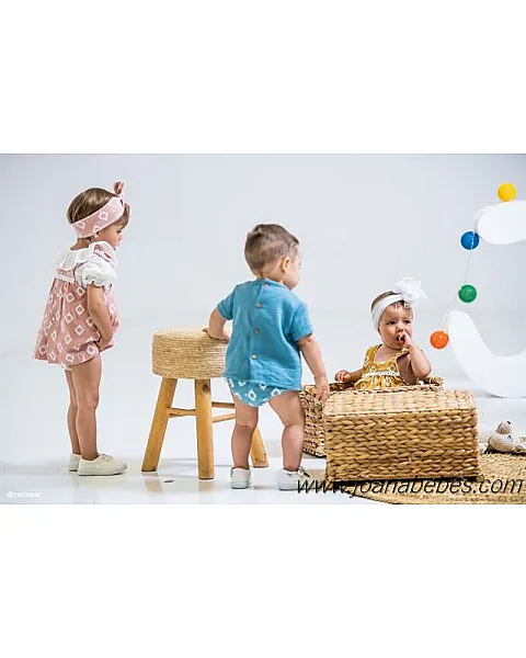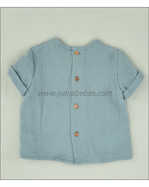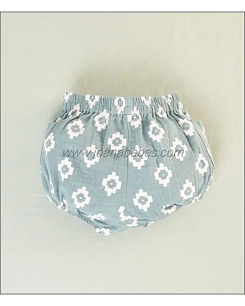 CONJUNTO BLUSA DE GASA TURQUESA Y POLOLO ROMBITOS .