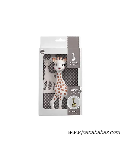 Caja de regalo concurso foto Sophie la girafe, el cual incluye a Sophie la Girafe más un anillo de dentición ¡de regalo!