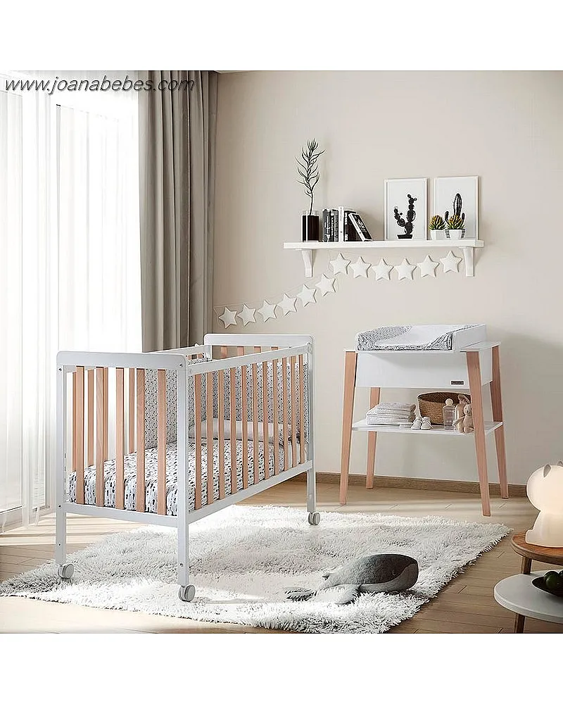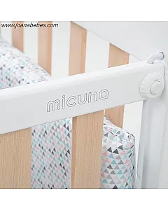 Nuestra cuna está fabricada en madera de haya con acabado antibacteriano babybacter®micuna, pinturas al agua y barnices no tóxicos.