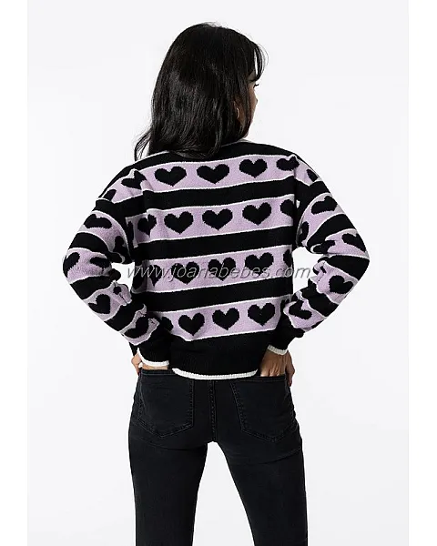Jersey de punto con cuello redondo y manga larga. Aplicación hilo metalizado combinado a contraste.