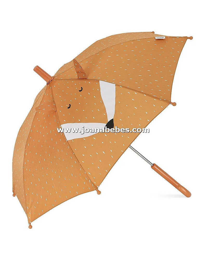 ¡Disfruta de la lluvia con nuestras sombrillas alegres de animales hechas de material reciclado! ¡Un día gris cambia instantáneo de color con estos amantes de animales alegres a tu lado! Mantente seco bajo el paraguas de tu animal favorito. Puedes elegir entre el Mr. Polar Bear, Mr. Fox, Mrs. Elephant, Mrs. Rabbit, Mr. Monkey, Mr. Crocodile & Mr. Lion. ¡Sus orejas de soplillo revolotean felices cuando saltan en los charcos y bailan bajo la lluvia! Las paraguas están hechas de poliéster 100% reciclado. El sistema deslizante para abrir y cerrar el paraguas está especialmente diseñado para las manos de los niños, de modo que los niños puedan usar el paraguas de manera segura y suave. El paraguas tiene una armadura de aluminio fuerte, de alta calidad y muy ligero. Cuando el sol vuelva a brillar, ¡puedes recoger el paraguas con la cola del animal!