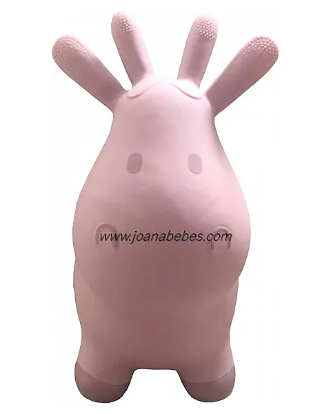 El animal saltarín está fabricado de plástico resistente y se puede agarrar por las orejas. Con la bomba manual incluida, es fácil y rápido de inflar. Apto para niños a partir de 12 meses, el peso máximo de carga es de 25 kg.