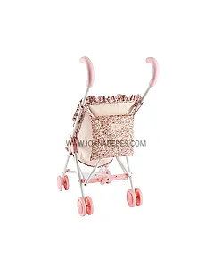 Saca a pasear a tus muñecas con la silla Martina grande con estampado de flores y su bolsito a juego, plegable con sistema tijera muy práctico.