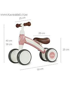 El correpasillos dispone de 4 ruedas muy estables (2 delante y 2 detrás) para asegurar el equilibrio de los más pequeños. Las ruedas son de goma para que pueda adherirse mejor a todas las superficies y no haga ruido. Los puños son de goma antideslizantes y tiene un asiento acolchado para que estén cómodos en todo momento.