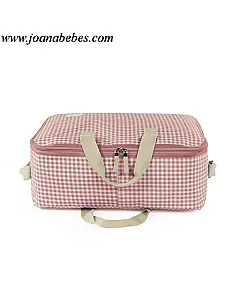 La maleta de bebé I love Vichy rosa es un bolso especialmente diseñado para el momento más importante del embarazo, que es la llegada de tu bebé, momento en el que hay un montón de cosas que preparar. Por esto necesitas un espacio cómodo para transportar todo lo necesario para ti, el padre y el niño. Esta maleta de bebé es el modelo perfecto para cubrir todo lo que no puede faltar en este día tan especial. Es cómoda, ligera y manejable con dimensiones rectangulares y apertura práctica para tener todas tus necesidades cubiertas. Cuenta con cierre seguro de cremallera en ambas direcciones que facilitan su apertura, incluye una correa larga para llevar colgada en el hombro y asas cortas de mano. Además en el compartimiento interior tiene un forro a juego con gomas para contener la ropa y mantener todo en su lugar. Gran calidad y mucho estilo. Fabricado en un material resistente y de fácil limpieza a mano o a máquina a 30 °C. Walking Mum protege a tu bebé utilizando los mejores tejidos, libres de colorantes azoicos y sustancias nocivas para la salud. Nuestra colección Walking Mum guarda toda la calidad de la marca Pasito a Pasito pero con un particular sello de estilo urbano y moderno que no pasa desapercibido, para vestir diferente los paseos con tu bebé. Las bolsas de maternidad de esta línea son más sport y prácticas, especialmente pensadas en mamás y papás modernos que aprecian los diseños más actuales y en tendencia sin dejar de lado la calidad y la funcionalidad de los accesorios que complementan y hacen más cómodos todos los paseos con sus bebés. Especificaciones: Materiales: 100 % algodón plastificado. Color: Rosa. Medidas: 49X37X17 cm.