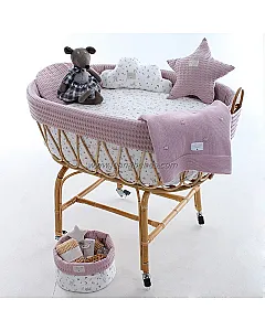 Minicuna de ratán fabricada artesanalmente para aportar a la habitación del bebé un estilo muy bohemio y natural. Con el uso de elementos naturales en la decoración de interiores, esta fibra atemporal en auge ha vuelto con más fuerza que nunca, también en espacios infantiles. La mayor virtud del ratán es su solidez, ya que es mucho más robusto que el mimbre y tiene una mayor resistencia a la humedad, por lo que con esta minicuna de ratán podrás crear ese ambiente étnico-escandinavo, con el que sueñas para la decoración en la habitación de vuestro/a peque. Dispone de colchón viscoelástico desenfundable, con tratamiento anti-ácaros , así como ruedas transparentes de goma giratorias con freno. (Dimensiones colchón: 77x40x4 cm) *Dosel opcional.