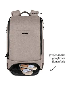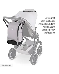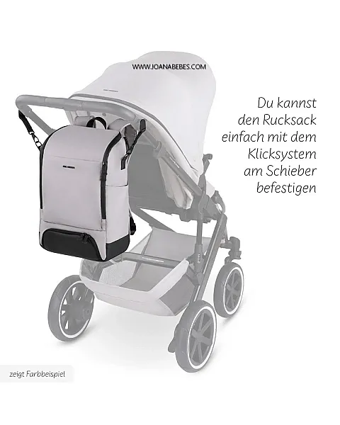 La mochila cambiadora también queda bien durante los viajes y, con la correa para el equipaje en la espalda, se convierte en un práctico equipaje. La mochila cambiadora Active queda bien en el cochecito o en la espalda: es ideal para todos aquellos que quieren ir de viaje de forma práctica y con estilo. Se puede fijar de forma rápida y sencilla a todos los modelos de cochecitos y sillas de paseo de ABC Design mediante soportes universales.