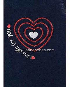 Vestido de punto con bolitas en los tirantes para niña. Vestido de color azul con corazones de color rojo bordados en el pecho. Elástico en la cadera.