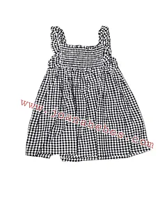 Vestido de tirantes de cuadritos de color rojo para niña. Vestido con volante en los tirantes con pieza elástica en el canesú delantero. Abertura en la espalda con botones de plástico de color rojo..