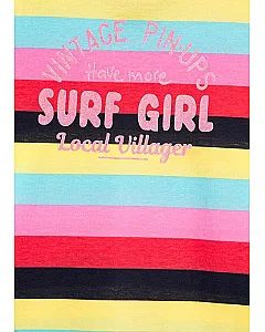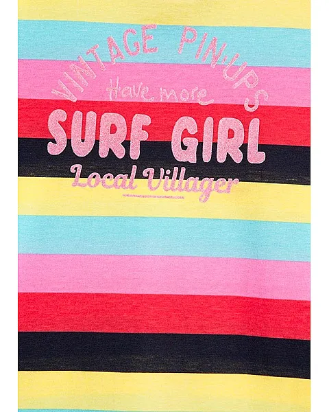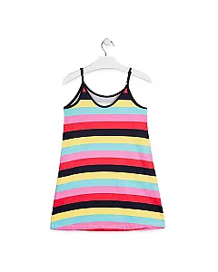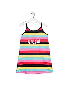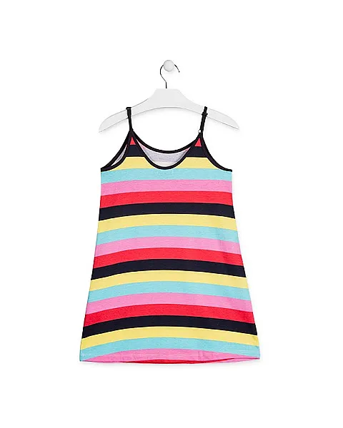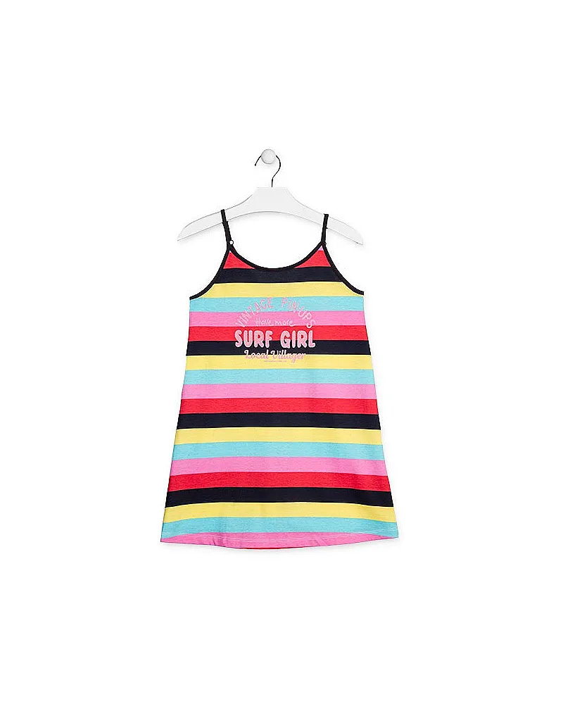 LOSAN Vestido de punto de color azul a rayas de colores para chica. Vestido de tirantes con espalda nadadora. Estampado en el pecho de...