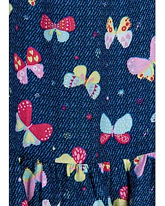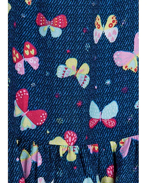 Vestido de manga corta con mariposas estampadas para niña. Vestido de manga corta de punto de color azul vintage combinado...