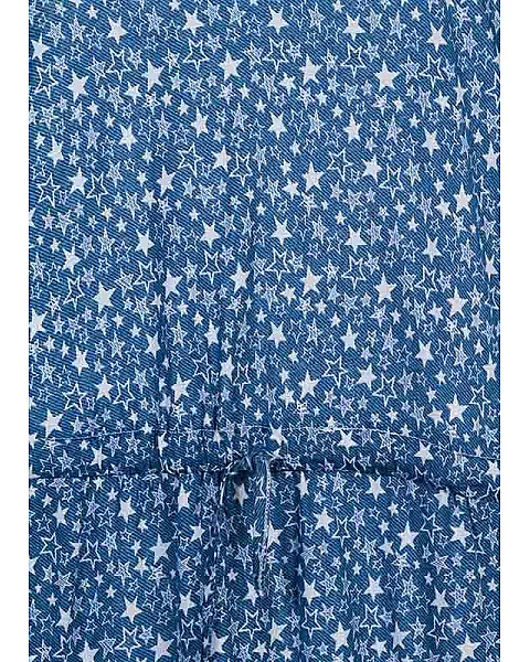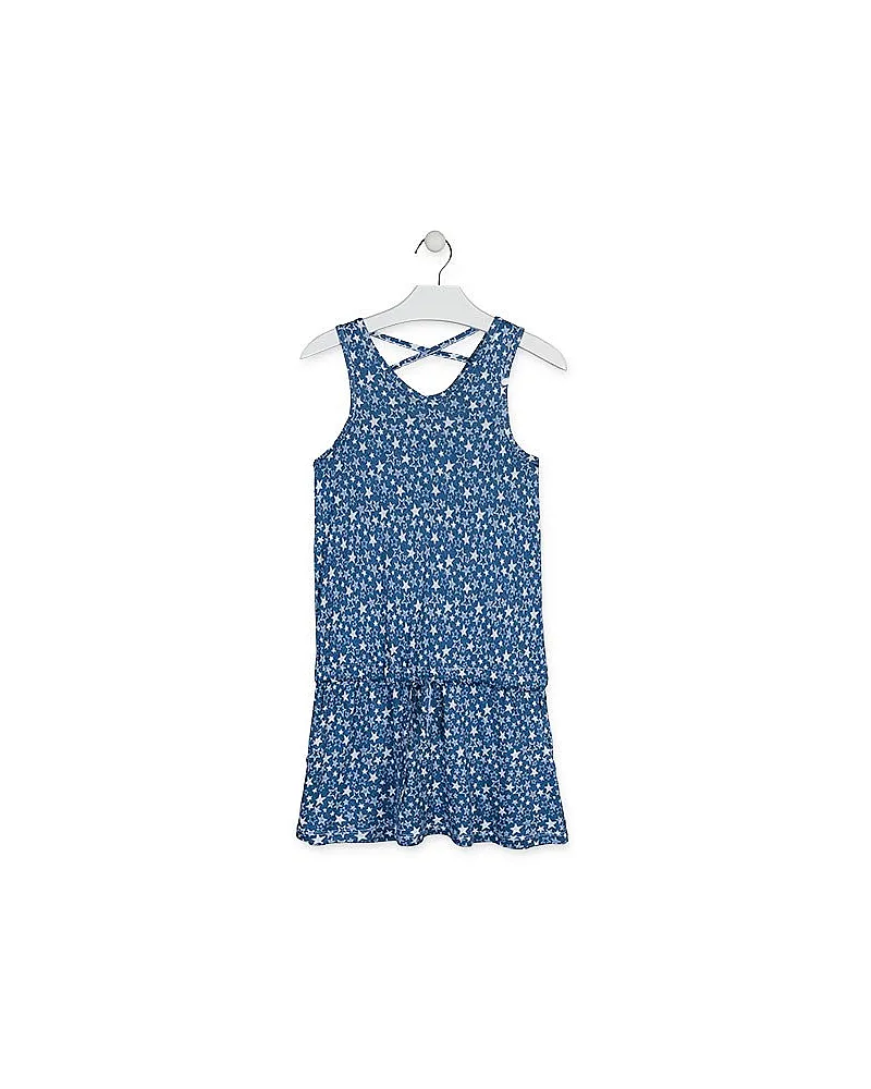 Vestido de color FUCSIA de estrellitas para chica. Vestido cuello pico de tirantes con tiras cruzadas en el escote de la...