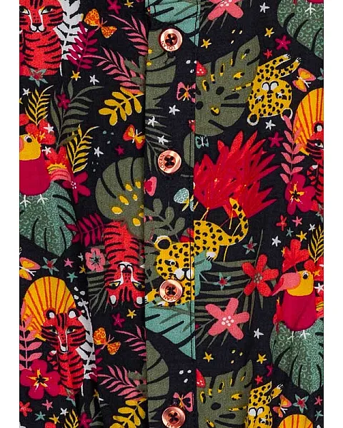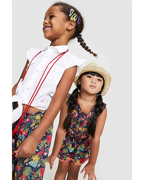 Vestido de tirantes de color amarillo para niña. Vestido con abertura delantera con botones. Bolsillos delanteros...