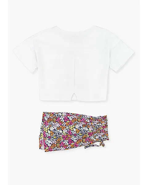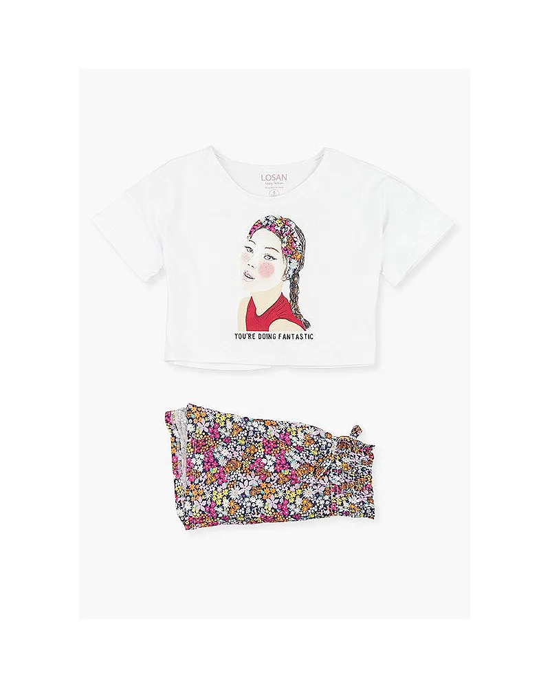 Losan Conjunto camiseta con parche de lazo de flores y short.