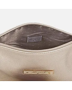 Este neceser de bebé, diseñado a juego con bolsos y otros artículos de nuestras colecciones, destaca por su diseño cuidado y elegante. Sus medidas son 15 x 25 x 9 cm, suficientes para alojar los artículos básicos de higiene de tu bebé, como cremas y lociones. En su parte delantera muestra una bonita lazada decorativa, que va recogida con una pieza metálica que aporta brillo y sofisticación. Está realizado en charol, que también presenta un acabado brillante y muy agradable, confeccionado con diseño combinado liso y de rombos. Emplea cremallera para su cierre y cuenta con una pequeña asa para llevar el neceser más cómodamente con la mano o para colgarlo en un perchero.