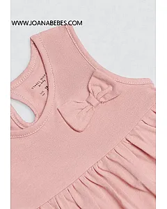 Vestido de bebé sin mangas con detalle lazo en la parte izquierda del escote. Está hecho con algodón 100% natural, lo que lo hace suave y transpirable para la piel delicada del bebé.