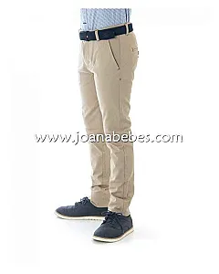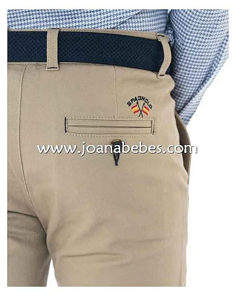 Pantalon chino basico, de color camel con pespuntes en contraste en marino para niño de 2 a 16 años