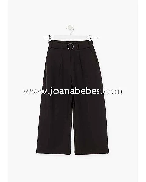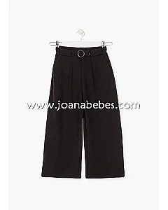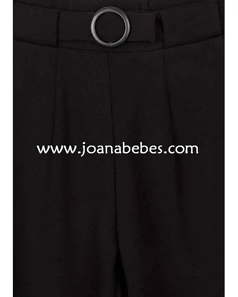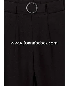 Pantalón con hebilla en la cintura para chica. Pantalón de punto. Cintura elástica en la parte posterior. Bolsillos delanteros.