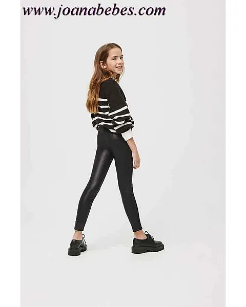 Leggings térmicos de niña efecto piel con interior afelpado y botones decorativos forrados en la parte frontal. Elásticos de ajuste perfecto y cómodos. Incorpora y cinturilla elástica regulable con botón para mejor ajuste de talla. Colección Mini Me.
