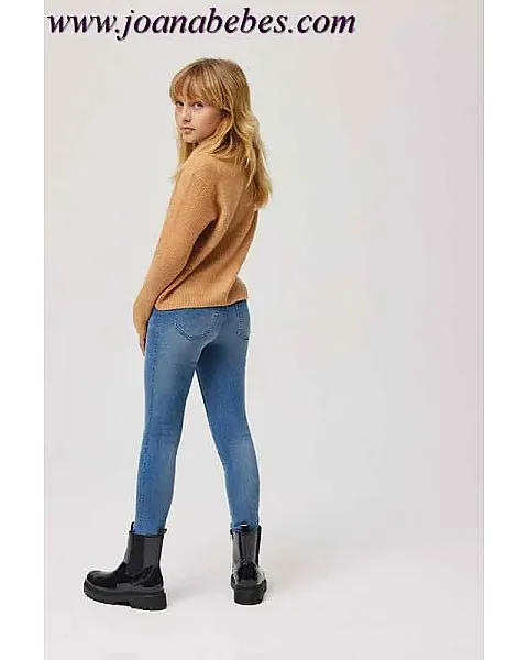 Jeggings, leggings vaqueros para niña. Jeans con detalle de lazo y bolsillos simulados en la parte delantera, de ajuste perfecto y cómodo. Incorpora bolsillos traseros y y cinturilla elástica regulable con botón para mejor ajuste de talla. Detalle del logo en forma de corazón en el bolsillo trasero.