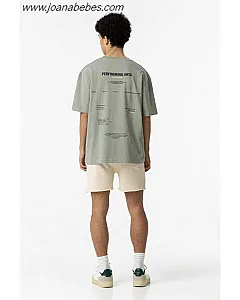 Camiseta básica de cuello redondo y manga corta. Bermuda con cinturilla elástica y bolsillos laterales.