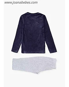 Pijama largo de terciopelo para . Pijama de dos piezas. Camiseta de manga larga. Cuello redondo en tejido de canalé. Estampado delantero. Pantalón largo con cintura elástica. Puños en tejido de canalé. Servido en bolsa del mismo tejido.