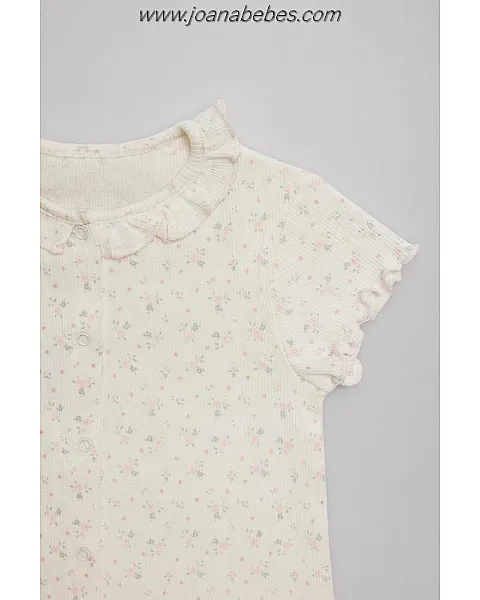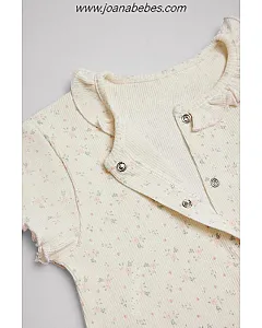 Pelele bebé manga corta. La unidad está compuesta de algodón 100% natural para que los más pequeños puedan disfrutar combinando la comodidad y el estilo. Textura fina y suave con estampado de flores. 100% algodón