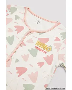 Colección Princess Dino. Este pelele está confeccionado con algodón natural, garantizando una sensación suave y agradable en la piel delicada de tu bebé. Su interior afelpado proporciona una calidez reconfortante en los días más frescos, mientras que el estampado "Dino Princess" añade un toque de diversión y estilo a su look. Perfecto para jugar, dormir o salir de paseo, este pelele será la elección favorita de tu pequeña princesa.
