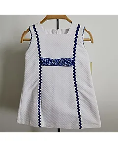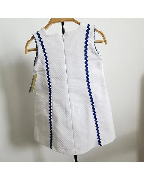 Vestido sin mangas de pique blanco con piculina azul electrico  y lazo en el pecho estampado al tono
