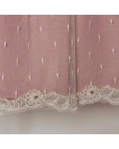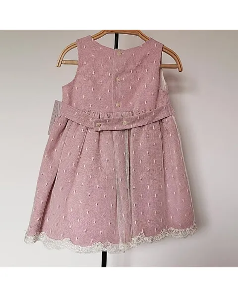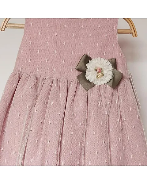Vestido de la marca Rochy de tul bordado con encajes en la bajo, con bonito aplique en forma de flor en el pecho.