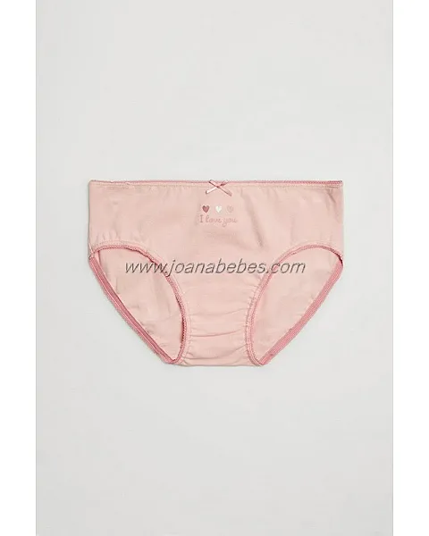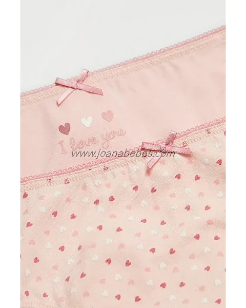 Pack de 2 braguitas de algodón infantiles. Confeccionadas en algodón natural, las fibras naturales de este material aportan suavidad, adaptabilidad y comodidad que se alinean en la nueva propuesta de ropa interior para niña.