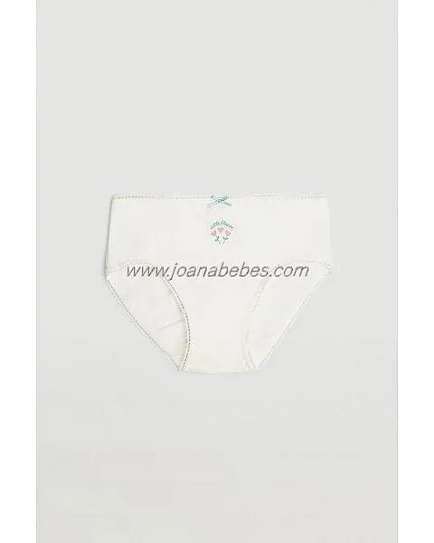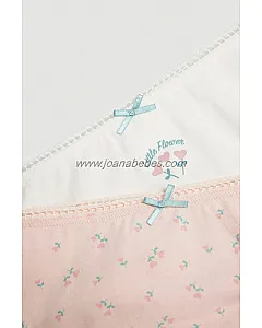 Pack de 2 braguitas de algodón infantiles. Confeccionadas en algodón natural, las fibras naturales de este material aportan suavidad, adaptabilidad y comodidad que se alinean en la nueva propuesta de ropa interior para niña.