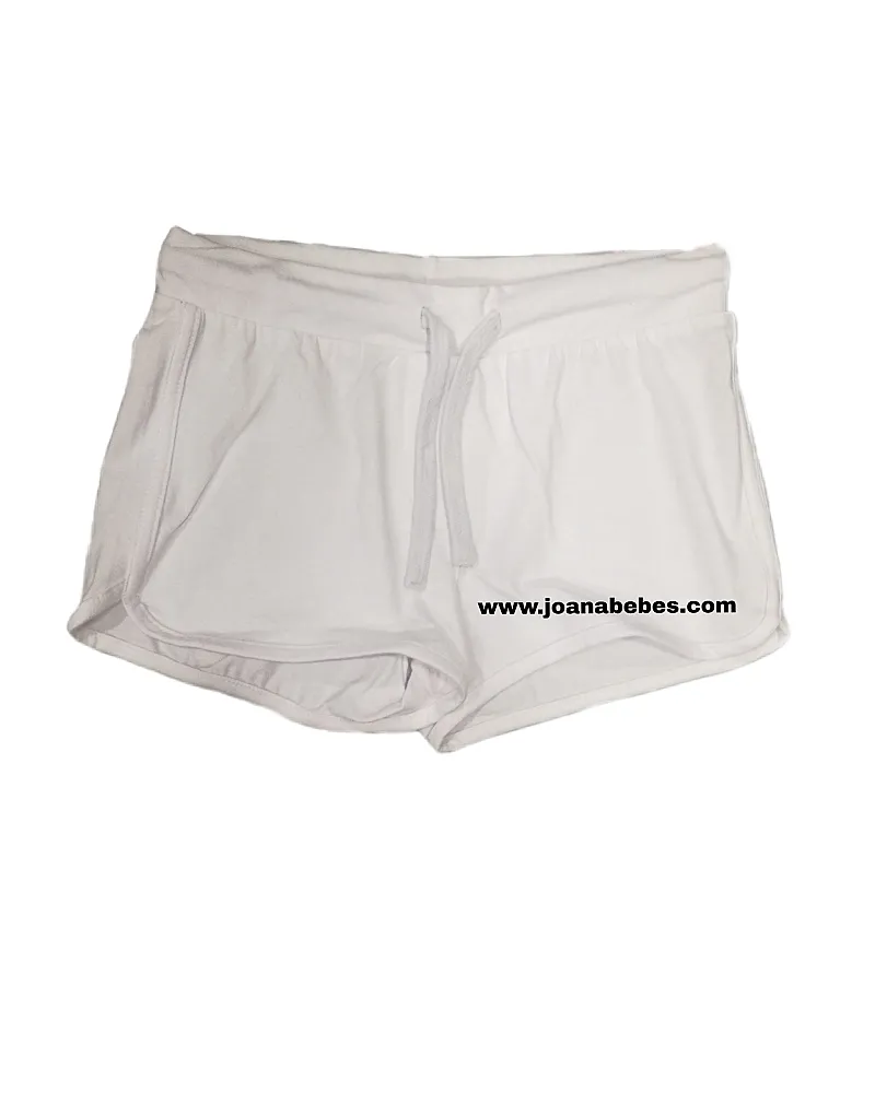 Short básico de algodón para chica. Pantalón corto deportivo básico en algodón. Bolsillos, elástico y cordón en cintura