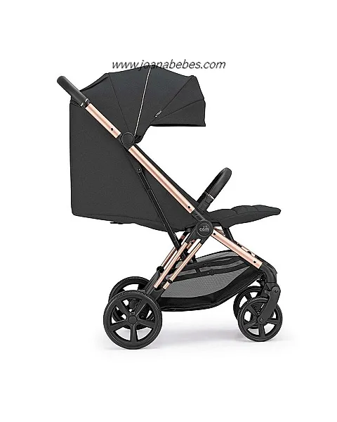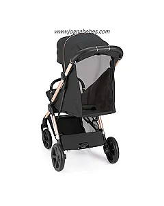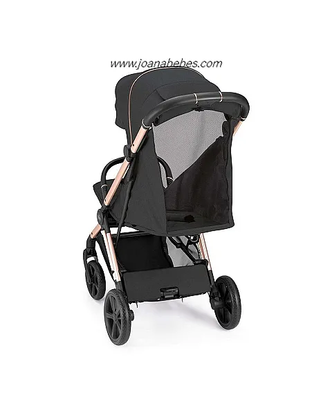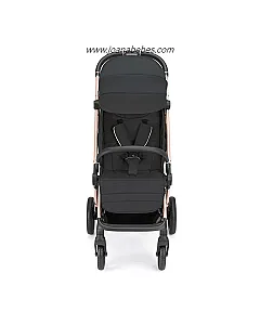 Chasis de aluminio, capota con ventana superior para ver al niño y se puede abrir en la parte trasera, con mosquitera. Además de extensible con protección UV50+. Respaldo con multiposiciones válido desde recién nacido, posiciones ajustables con una sola mano. Con asiento amplio y cómodo, manillar en ecopiel con sistema de plegado de una sola mano, reposapiés ajustable, incluye cubrepiés para proteger las piernas del viento o la lluvia, apoyabrazos fácilmente desmontable en cuero ecológico, ruedas traseras con sistema de freno sincronizado y ruedas delanteras giratorias, suspensiones en las cuatro ruedas, cinturón de 5 puntos con protectores acolchados, enganche de cierre, cesta grande.
